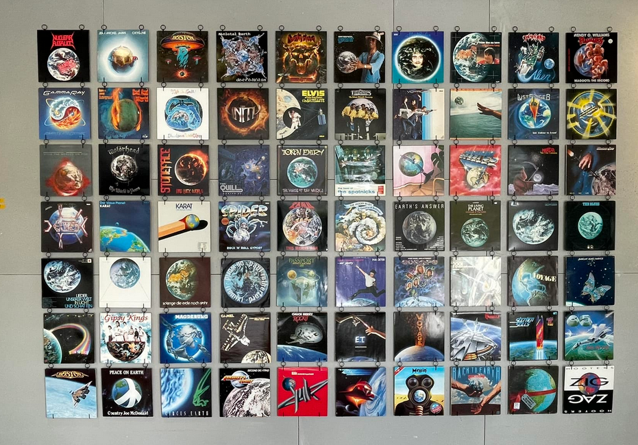 Installation mit 70 Plattencovern zum Thema Erdkugel, SAP Walldorf